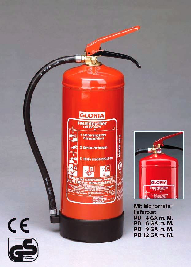 Löschmittel: 12 kg GLORIA- ABC-Hochleistungslöschpulver